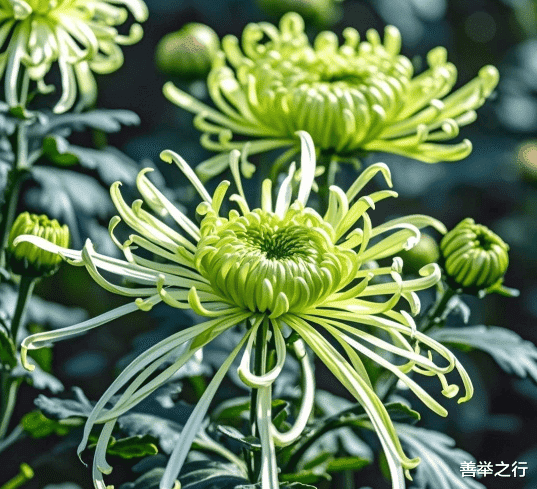 菊花的模样十分特别。它的花型就像一把把精致的小伞,由无数细长的花瓣组成。有的花瓣紧紧卷曲,,有的花瓣舒展平直,还有的花瓣顶端带着小小的弯钩。菊花的颜色更是丰富,金黄的像阳光洒下的碎片,雪白的似冬日初降的寒霜,紫红的如燃烧的晚霞,就连墨绿、淡蓝这样少见的颜色,也能在菊花丛中寻到踪迹。