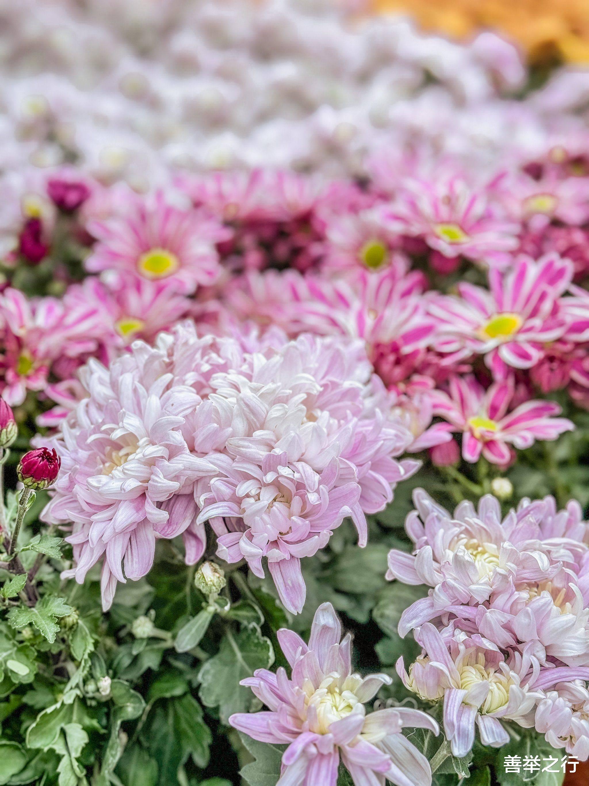 城区有片菊花园,远远望去像撒了满地的星星。走近些看,嫩黄的花朵挨挨挤挤凑成花毯,几个粉嘟嘟的绣球花点缀其间。把鼻子凑近花心,能闻到淡淡的草药香,像是谁在泡菊花茶。