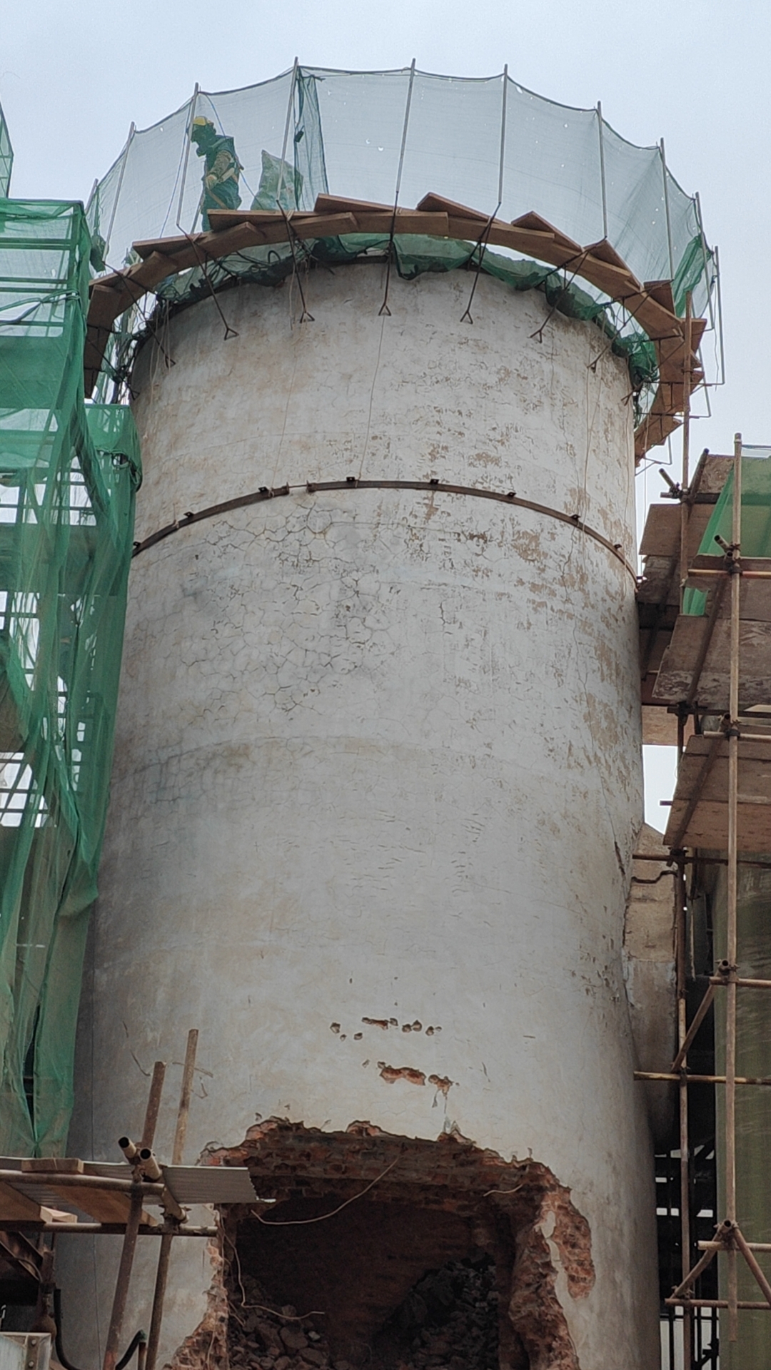 筒外封闭防护:外挂密目安全网 + 铁皮围挡,防止碎块飞出