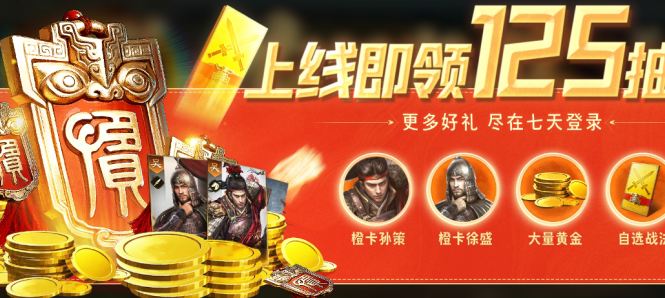 丰厚的福利也是这游戏的一大亮点。创建角色就能领取全服预约奖励,有橙将和资源,这让平民玩家开局就有一定的优势。七日狂欢活动,次日送橙将孙策,后续赠自选战法包,让大家前期就能有不错的阵容。每日任务和签到累计送橙将袁绍,开服前七天免费送抽卡券、黄金、橙将和战法。这些福利让平民玩家即使不充值,也能在游戏里有很好的发展。