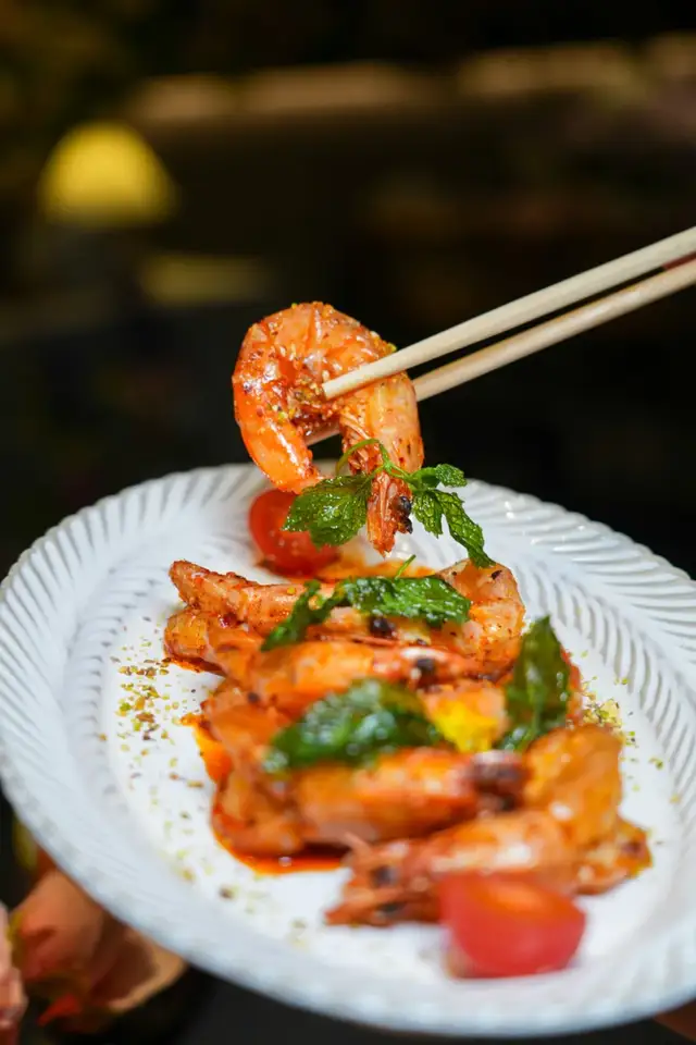 同样适合聚会约会点的芝士焗黑虎虾,黑虎虾肉质口感自然不必多说,撒上芝士,烤制到芝士融合拉丝,和虾肉结合,一口就超级满足!