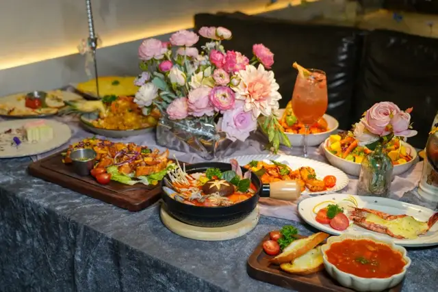 搭配着小甜品、生日小蛋糕还有各类饮品。