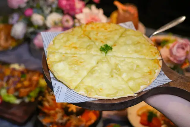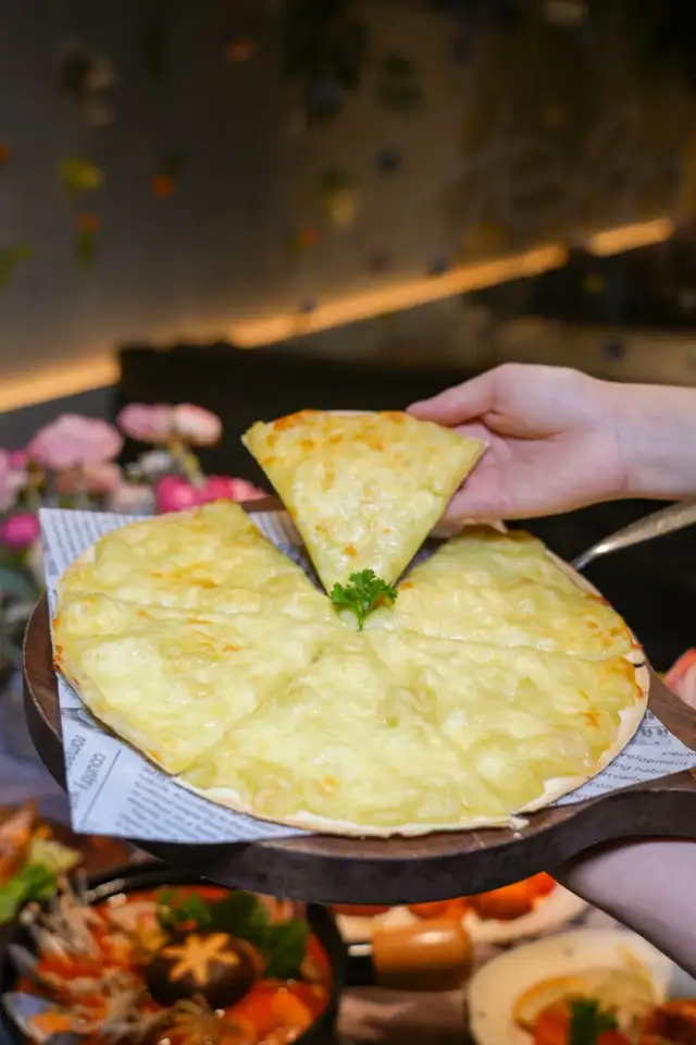猫山王榴莲多多披萨,只有榴莲肉和芝士的组合。