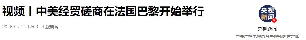 参考资料:《视频丨中美经贸磋商在法国巴黎开始举行》——央视新闻