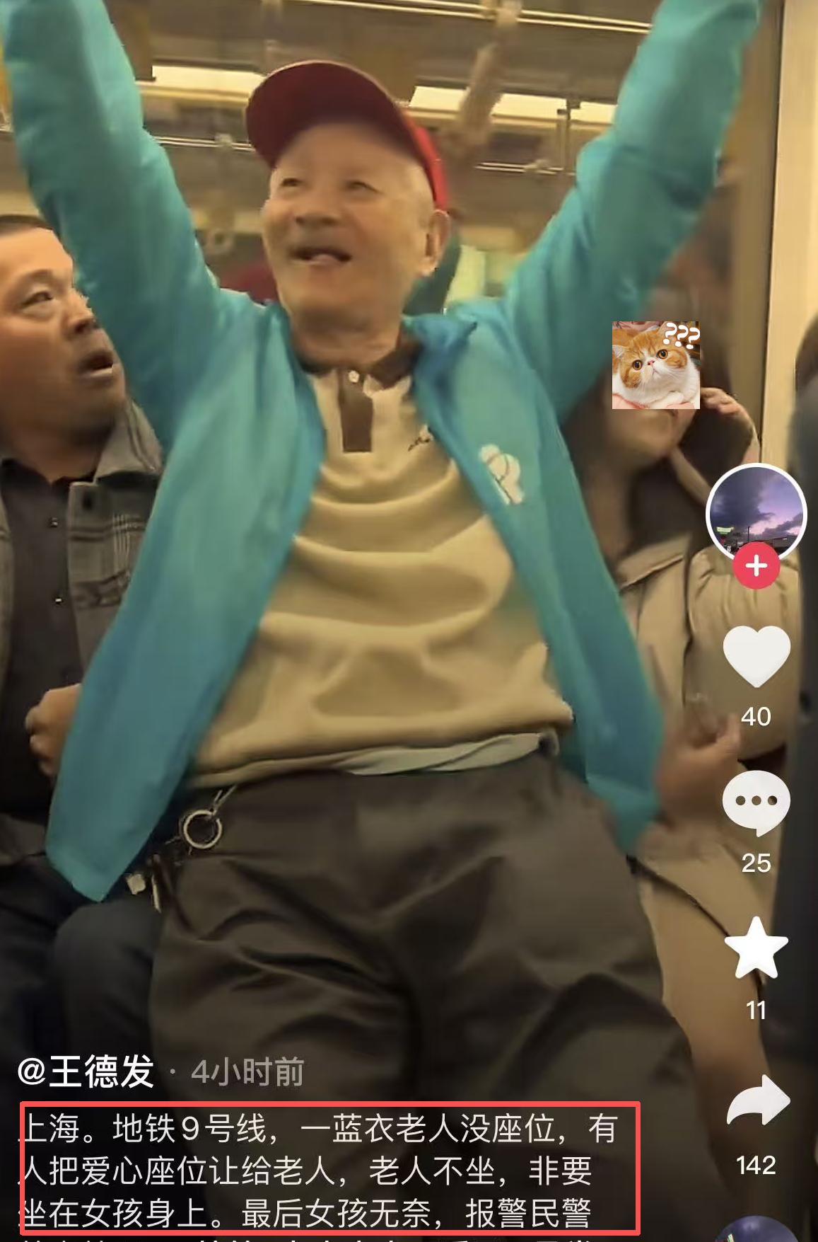 车厢里的人看不过去,有人给老头让座,可老头不要,坚持要坐女生腿上。