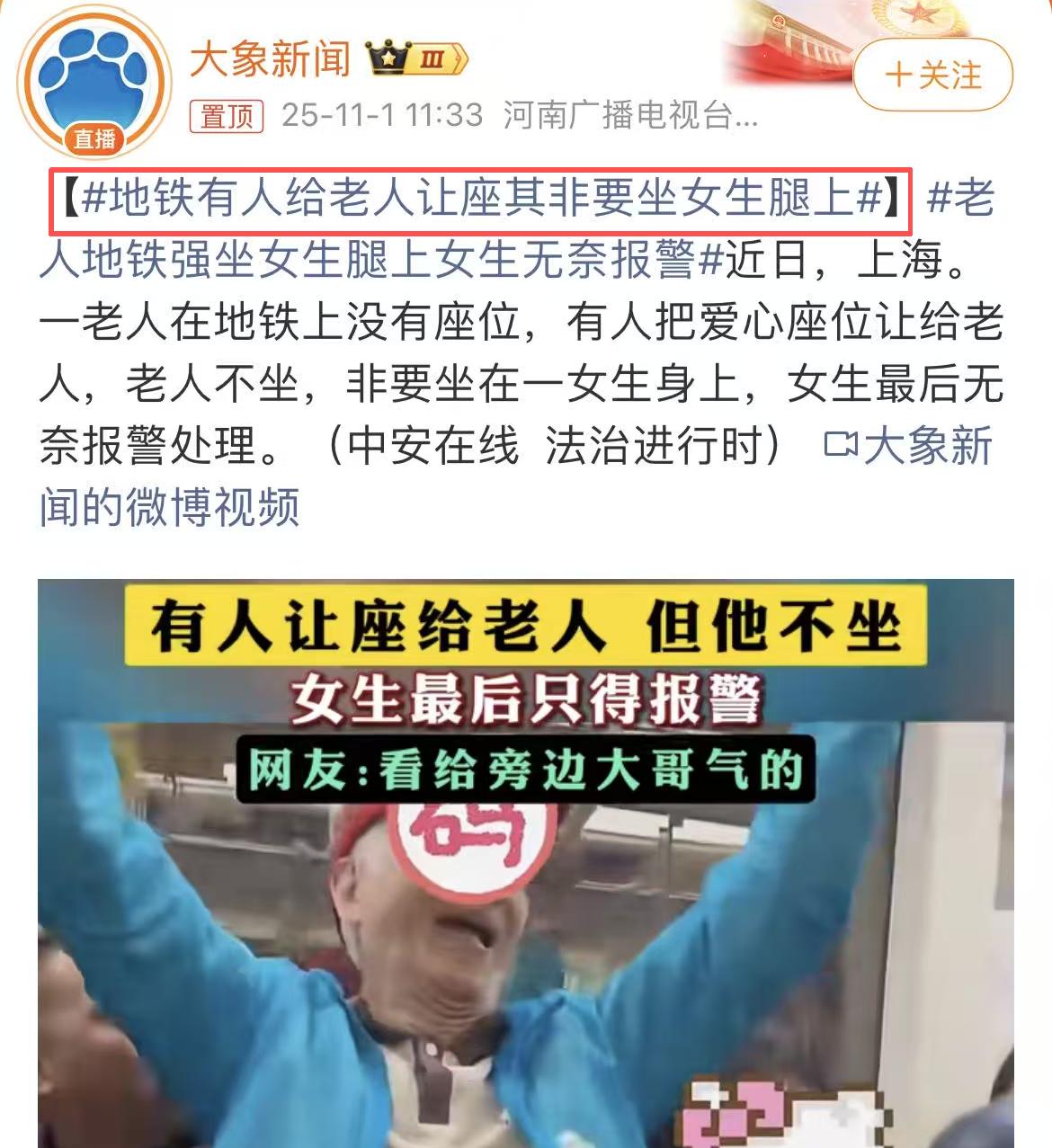 直到地铁执勤的人到来,大爷也没站起身,他就坐在女生腿上,怎么也不肯起来。