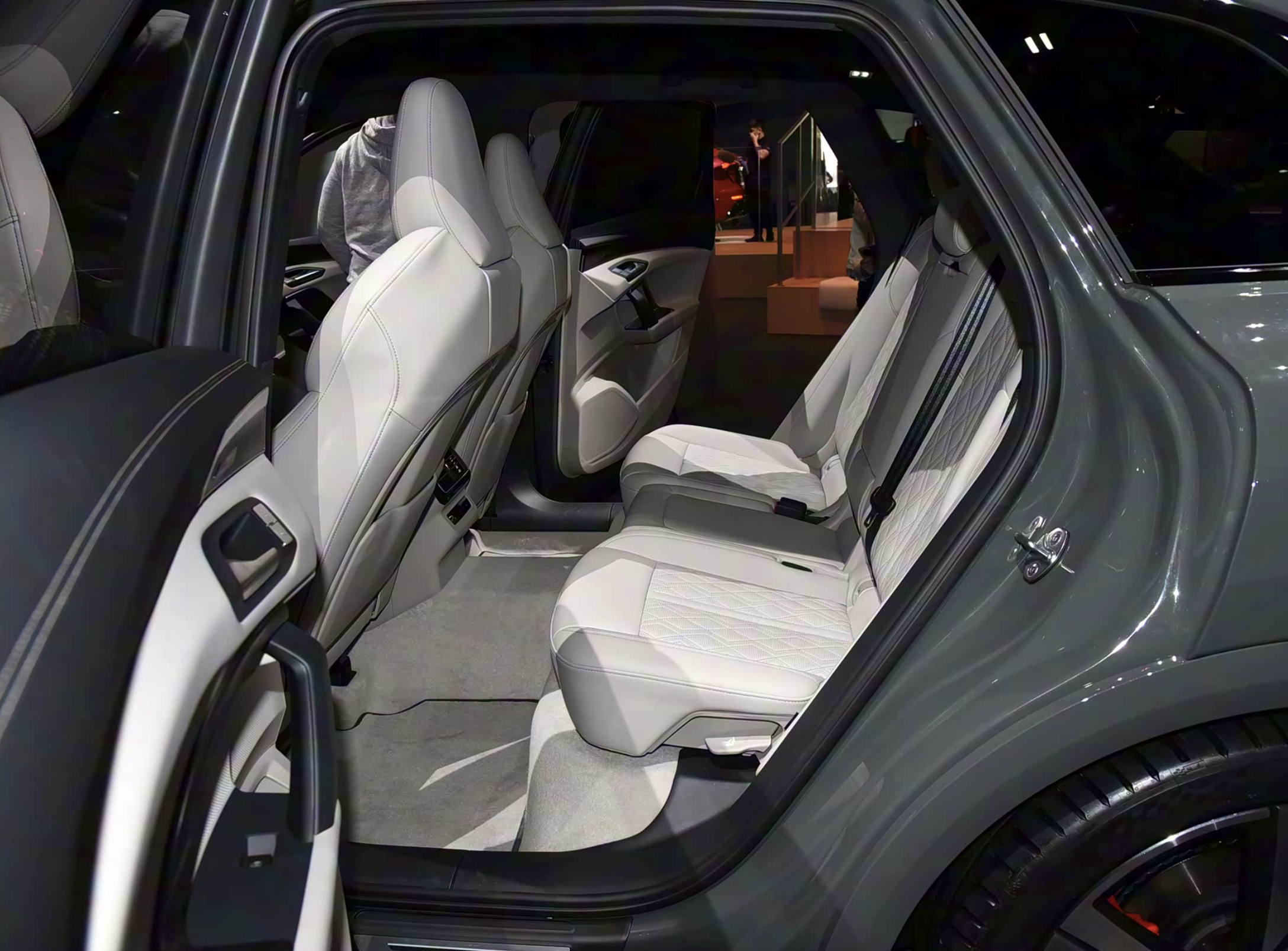 新一代奥迪Q5L的轮廓也发生了翻天覆地的变化,全新的车身设计让它更加接近奥迪Q7,车顶加入了黑色的行李架,车窗四周依旧加入了黑色的饰条和全黑的隐私玻璃,四个门把手采用了隐藏式设计,不仅让车身看上去更加简约,也有效降低了风阻系数。搭配着黑色的渐进式轮眉和黑色的侧裙,配备了20英寸的熏黑轮圈,匹配了255/45 R20规格的高性能轮胎。拥有更好的抓地力表现,不仅能适应城市的通勤代步,在高速路上的表现也游刃有余。尺寸方面,长宽高分别为4842/1900/1660(1640)mm,轴距为2945mm。车身尺寸和轴距相比海外版都加长了125mm。车内采用了传统的5座布局,后排座椅支持4/2/4按比例放倒,后备厢容积505L-1600L,实用性也很强。