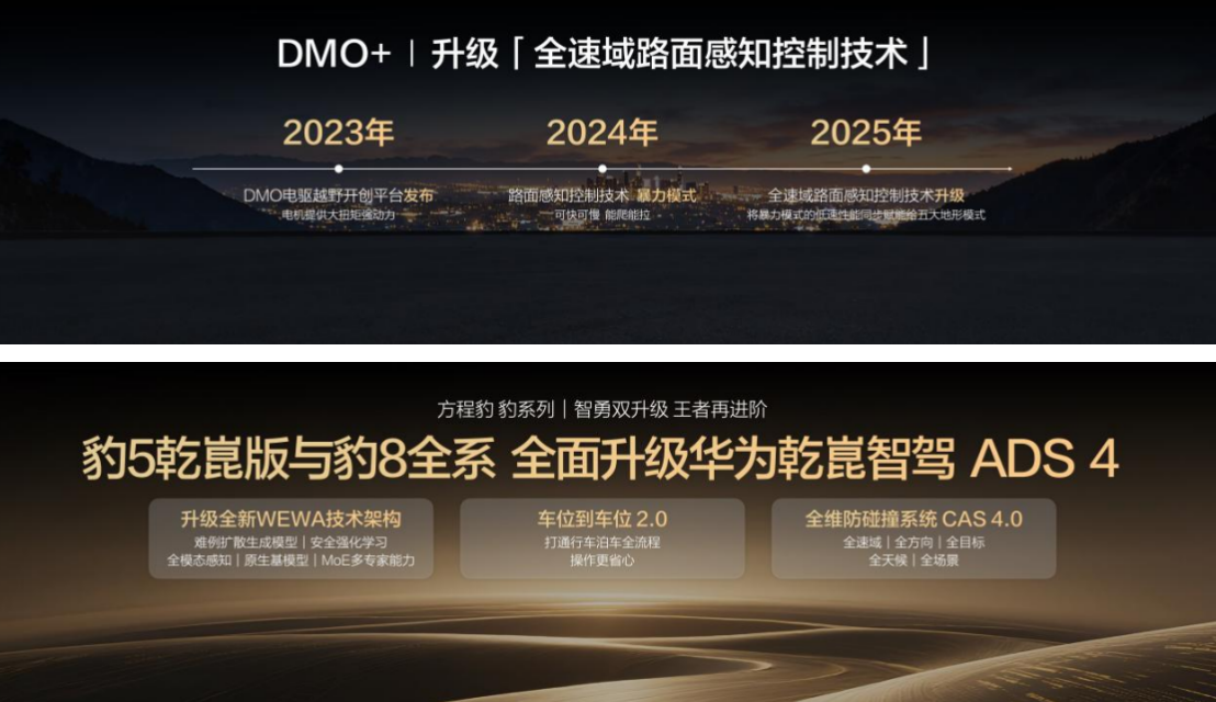 更值得一提的是,现有豹5与豹8车主也将通过OTA升级至DMO+,这种持续进化的产品思维,已经成为比亚迪系智能化的一大标志。