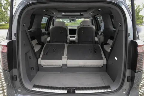 空间灵活性更是没话说。常规状态下,后备厢能轻松放下6个24寸行李箱,上次车友带全家去海边,装了3个儿童推车、4个旅行箱、一堆沙滩玩具和零食,后备厢还剩不少空间。如果需要装更大件的东西,比如孩子的平衡车、露营装备,把第三排座椅往前调一调,空间就能进一步拓展到2963L,就算想拉点大件物品也完全没问题。第三排肯定不是“应急座”,我身高180cm,坐进去调整好座椅后,腿部还有一拳多的距离,头部也不顶车顶。而且第三排同样是真皮材质,带独立空调出风口和充电接口,孩子坐后面能玩手机、看动画,不会觉得被冷落,老人坐久了也不会腰酸背痛。这种“人人都能坐得舒服”的设计,才是家用MPV该有的样子。