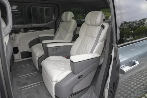 六座版则讲究均衡,2+2+2的布局,第二排独立座椅带腿托和按摩,第三排空间也不局促,适合四口之家偶尔带老人出行。邻居李老师是中学教师,家里有个上小学的孩子,父母偶尔过来帮忙带娃,选了六座版后,再也不用纠结“谁坐第三排”,每个人都能舒舒服服出行。而七座过道版,称得上是家用场景的“精准狙击”。它在六座版豪华基因的基础上,优化出了豪华MPV里少见的宽敞中央通道,这一个设计就解决了家庭出行的核心痛点。上次坐车友的七座过道版去露营,他老婆坐在第二排,不用起身就能直接伸手把水杯、玩具递给第三排的孩子,中途孩子想上厕所,也能自己从过道走到车门,完全不用麻烦大人挪动座椅。