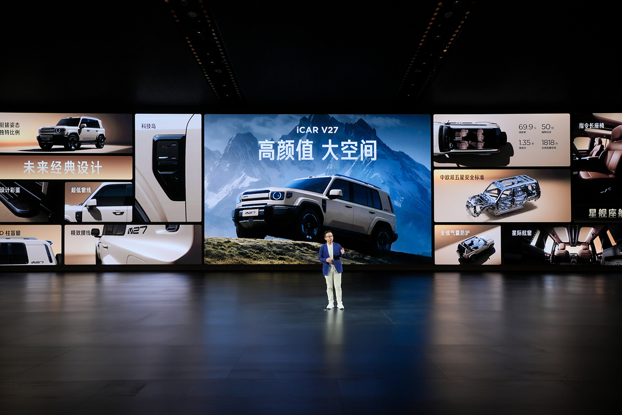 iCAR坚持只造特色车,V27以全能实力重塑家用SUV的体验边界,让个性驾趣与家庭实用二者兼得。在发布会上,iCAR品牌事业部总经理苏峻博士表示:“打造iCAR V27的原点就是一句话:‘父母的大玩具,孩子的游乐场’。凭借高颜值大空间,标杆增程性能,标杆公路操控,标杆泛越野实力,标杆智能辅助驾驶和标杆生态,V27必定成为全家都爱的全能硬派!”