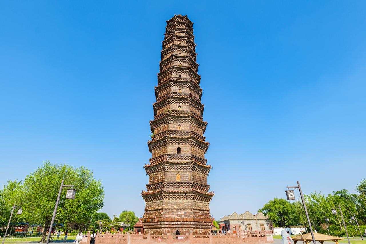 四、铁塔景区:琉璃砖雕的千年史诗始建于1049年的开封铁塔(开宝寺塔),实为仿木结构的琉璃砖塔,因颜色近似铁锈得名。这座55.88米高的建筑奇迹,历经37次地震、18次洪水仍巍然屹立,其奥秘在于地基采用糯米浆混合黏土夯实,塔身采用28种标准砖型榫卯咬合,形成柔性结构。