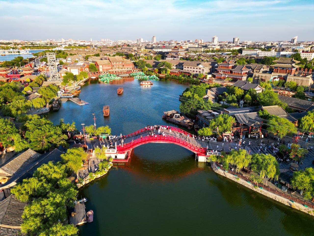 一、清明上河园:走入张择端的画卷作为开封的文化名片,清明上河园以北宋画家张择端的传世名画《清明上河图》为蓝本,按1:1比例复原了宋代汴京的市井风貌。园内不仅复现了虹桥、城楼、漕运码头等标志性建筑,更通过全天候实景演出让历史"活"起来。上午的《包公迎宾》开城仪式,下午的《岳飞枪挑小梁王》马战表演,尤其是夜间大型水上演出《大宋·东京梦华》,以激光水幕、火特效等技术,将宋代诗词意境化为视听奇观。游客可租借汉服漫步街巷,在孙羊正店品尝宋代糕点,或参与蹴鞠、投壶等古风游戏,实现从"观光"到"入画"的沉浸式体验。