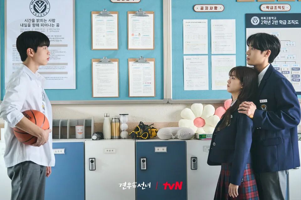 更惨的是,裴牵牛是个“巫女黑”。朴成雅只能把自己劈成两半:一半是“会摔跤、爱脸红的普通女同学”,用小女生的温柔去靠近他;另一半是“戴面罩、会驱邪的神秘巫女”,在他看不见的地方拼命保他平安。裴牵牛爱上的,根本是个“虚假人设”——他不知道,那些让他心动的“巧合”,全是朴成雅用灵力撑着的;他讨厌的“封建迷信”,才是救他命的关键。这就像你熬夜给男朋友做了手工礼物,他却嫌“太土”随手放一边——不是他不爱你,是他爱上的,从来不是“真实的你”。