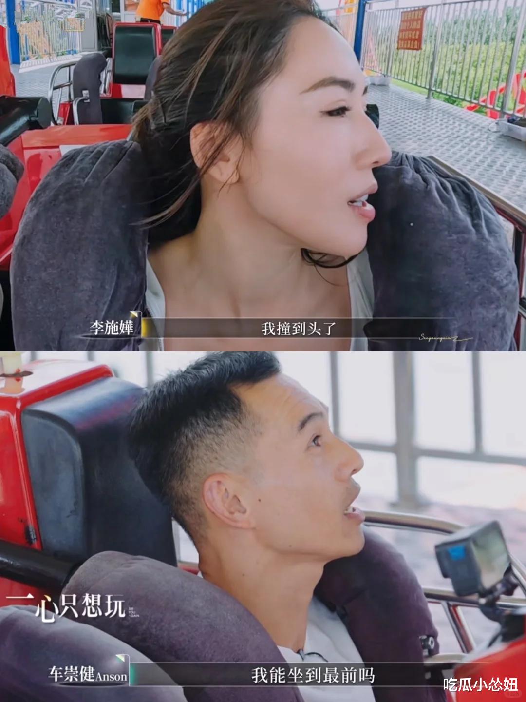 最新一期的综艺《再见爱人》李施嬅坐过山车时让撞到了头很疼。她男友车崇健说没事没事多喝点甜的,不管女友死活地自己又坐了一圈。
