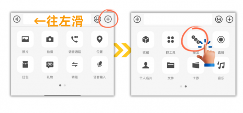 在下方的聊天框这个地方会看到最右边有一个加号,点击“+”加号,左滑选择“接龙”功能