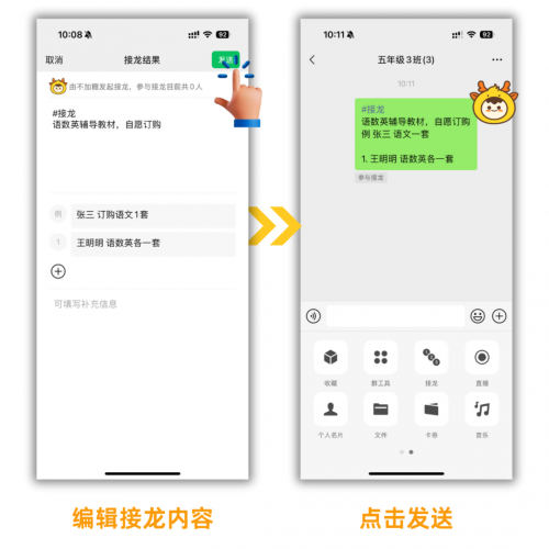 编辑完成,点击发送,这个接龙就会发送到群里面。