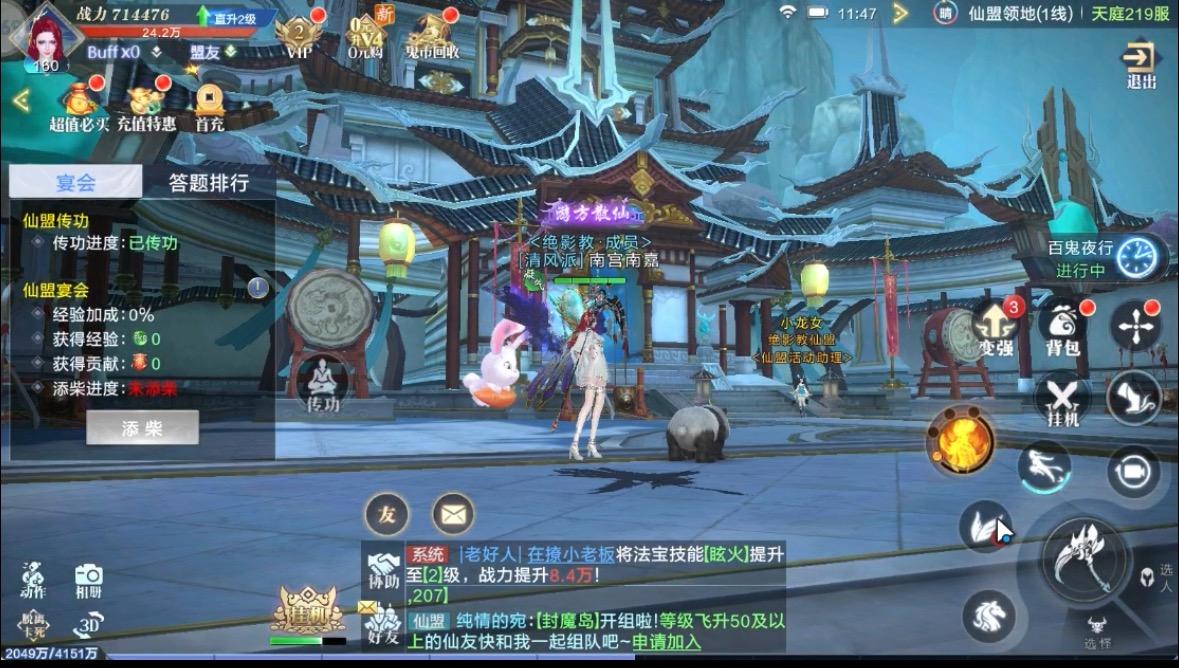 仙盟抱大腿:进个活跃仙盟,悬赏任务组队做,还能蹭共享经验,躺着都能升级。