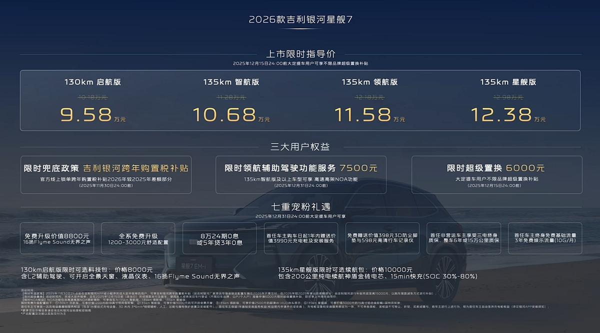 在当前的新能源汽车市场,各种概念与噱头层出不穷,但回归本质,用户最关心的依然是扎实的续航与真正实用的智能。2025年11月19日,2026款吉利银河星舰7 EM-i的上市,似乎正是为了回应这种朴素的期待。限时指导价9.58万起,这款车选择用实打实的技术升级,来诠释何为“进阶”,而非空洞的口号。