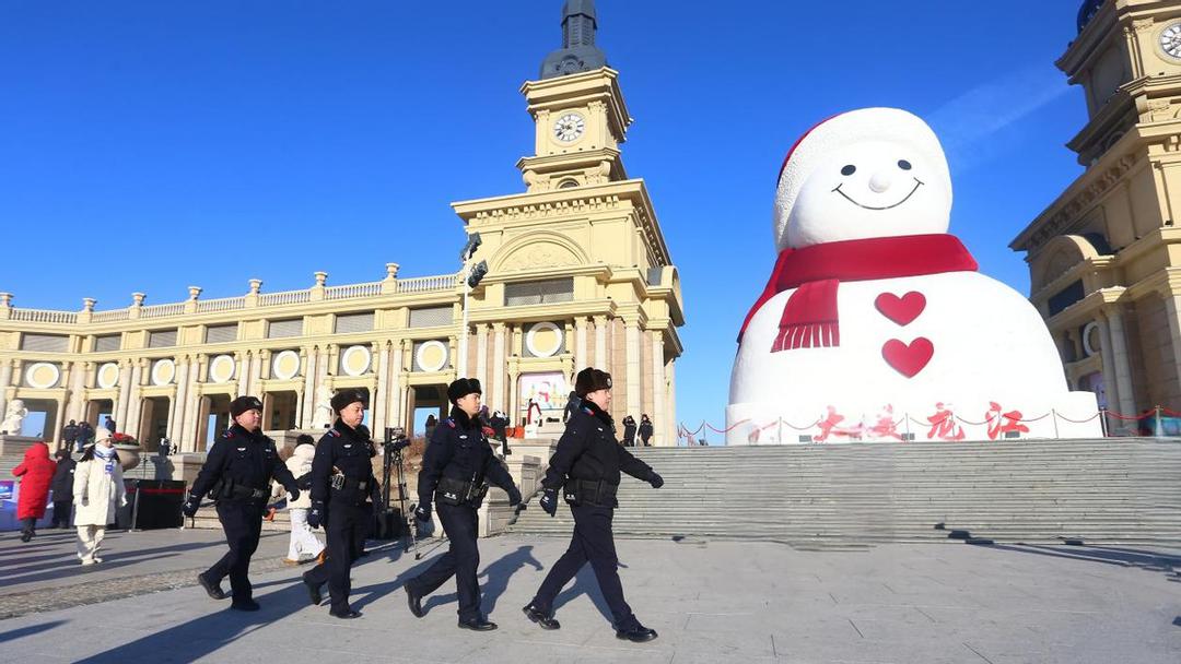 共工新闻社12月23日电(朱善永 王时)穹宇澄明,冰城盛景如约而至。近日,哈尔滨市道里区音乐广场19米巨型“网红大雪人”惊艳亮相,憨态可掬的造型引得八方游客纷至沓来。哈尔滨市公安局道里分局以周密部署,全力保障冰雪盛会安全有序。