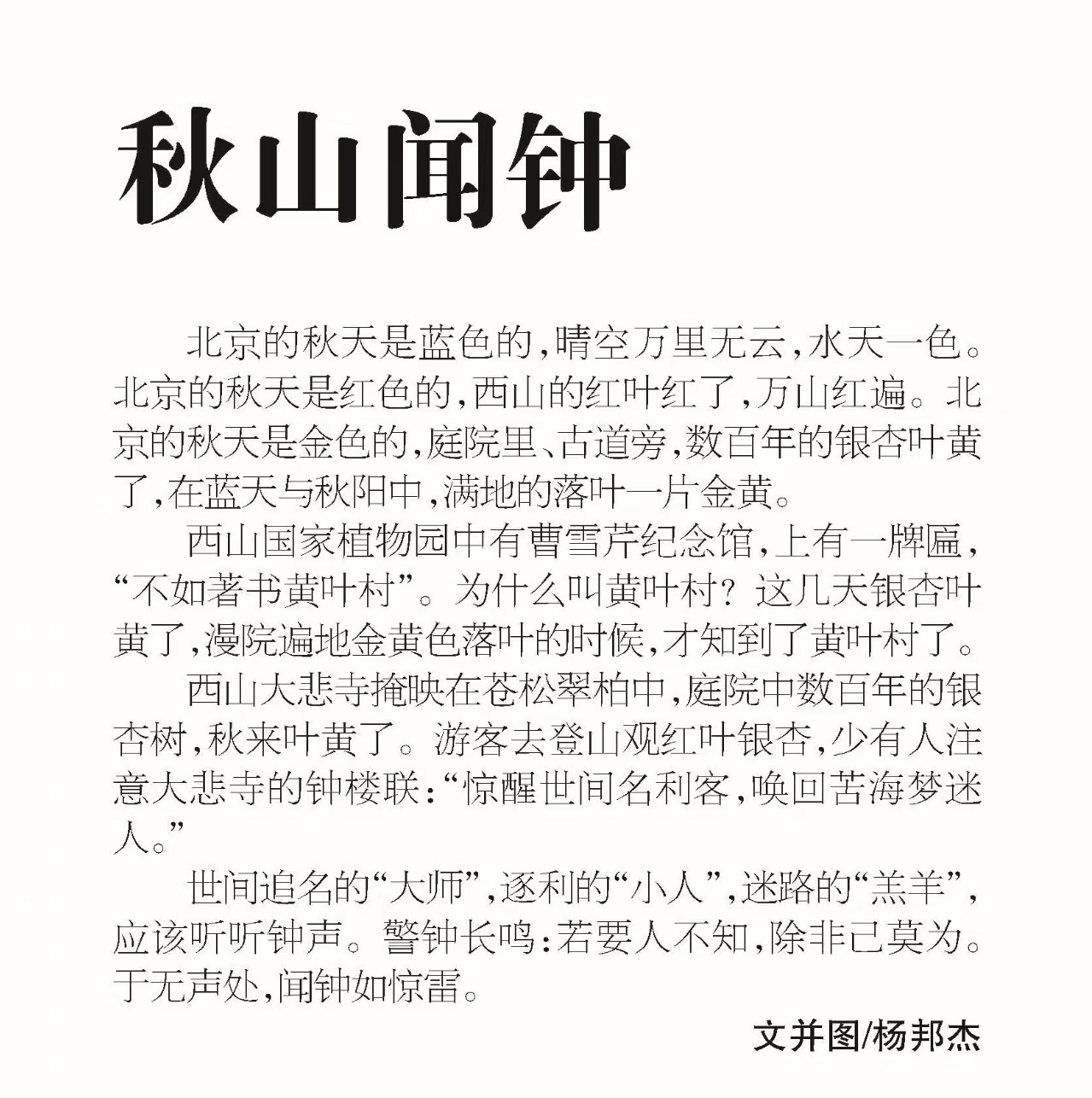 世间追名的“大师”,逐利的小人,迷路的“羔羊”,应该听听钟声。警钟长鸣:若要人不知,除非己莫为。于无声处,闻钟如惊雷。