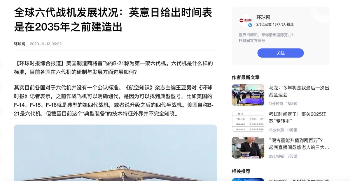目前解放军新试飞的飞机到底是不是第六代战斗机、或者它的代号是不是歼36,我们不得而知,但外国媒体确实是这么认为的。