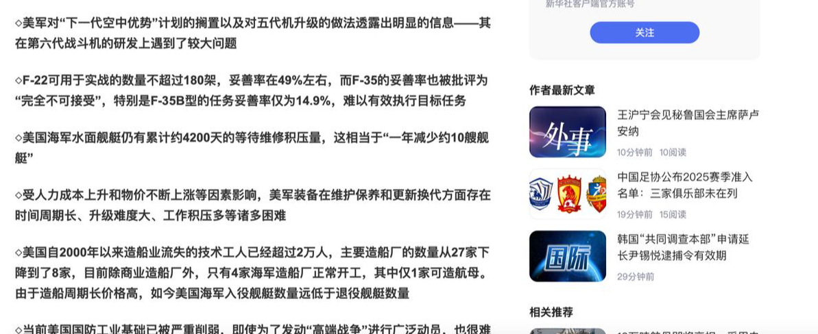 新华社的报道中明确写道,美国空军的两款第五代战斗机,一个是F22,而另一个则是F35。