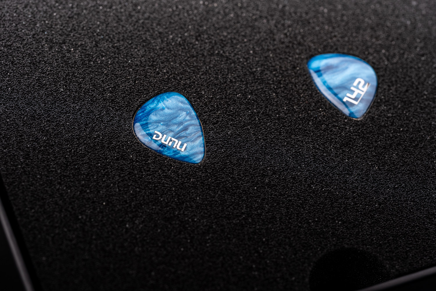 硬件结构上,动圈负责低频与极低频,两颗动铁负责中频、两颗负责高频,而两颗微型平板用来进一步补充极高频。因为极高频本身是属于泛音单元,本质上不构成对基础声像的搭建,所以本质上DN142的发声主体还是以圈铁部分为主,那既然提到圈铁,达音科算是业界最这个结构最富有经验的国产品牌、甚至没有之一,赵公子虽然明面上是达音科的总负责人和工程师,而他最拿手的其实就是声学结构设计,导管多长、滤网用什么、单元怎么摆、前后腔怎么设计、从哪里泄气、空气导流怎么走、动圈怎么固定、内腔的不同区域用什么材料和镀层,都是无数实战经验下来才能够做到门儿清的。而微型平板的部分,DN142采用的是更新的类动铁式平板,它的优势在于Q值都会比动铁更低,在基础音色层面比较稳定和中性,现在更多的用于高频和极高频也是因为更容易在获得高素质的同时兼顾一定的耐听性、对前端音色与控制力的要求更低,同时它类动铁的设计也更容易与动铁单元共享分频元器件与导管,可以在更小的空间内塞入更多的单元,比之前的6mm微型平板在实用性上高很多。阻抗37欧、灵敏度107dB/mW,整体而言是对大部分设备都比较舒服的工作负载,有点吃声压、但完全不难推,只是不建议搭配冷薄走向的设备。