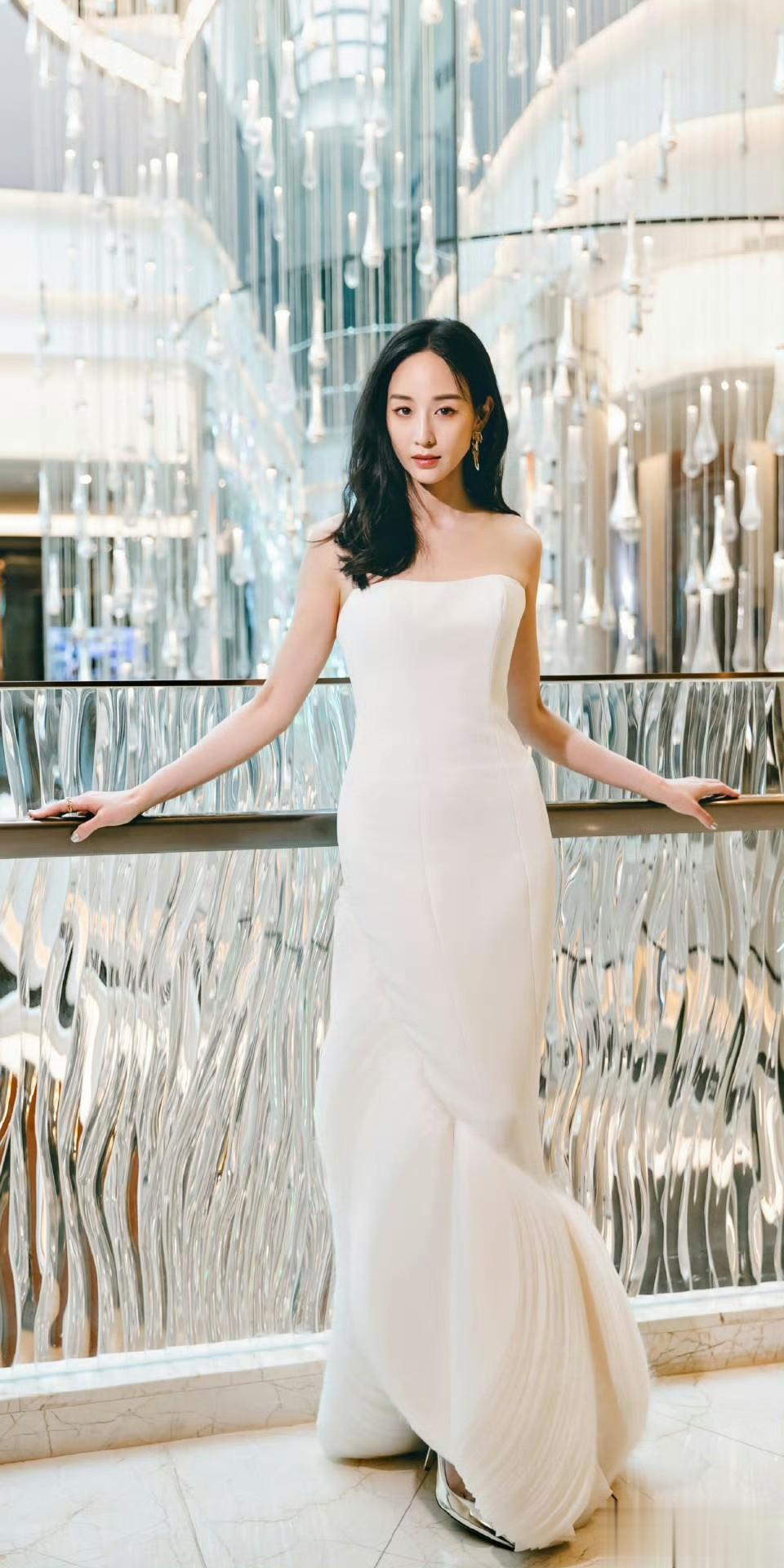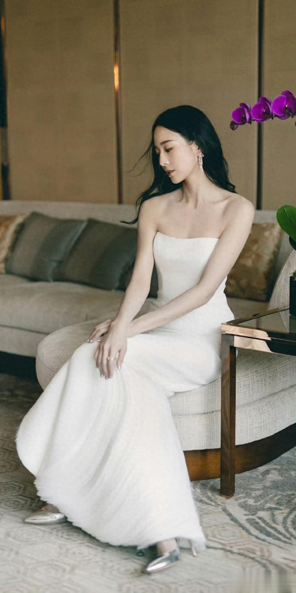 这组抹胸白裙造型,是适合做壁纸的神仙画面。把她的静谧美好设为背景,每次解锁手机,都能被这份从容治愈,让日常多一份高级感。