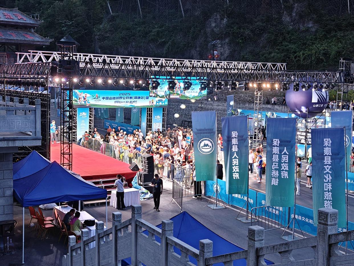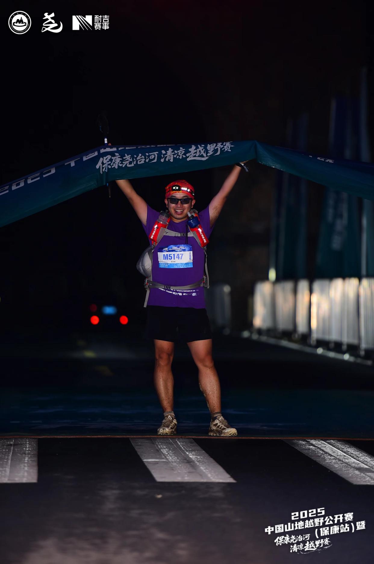 ▲接下来的一段将近20分钟的路途,因为比较暗,我也就懒得拍了,直到来到终点舞台对面的山头,被舞台上的工作人员捕捉到,给了我一个追光,主持人还特别有激情地说着一些“浮夸之语”,不好意思之外,确实“虚荣心”得到了大大的满足。从对面山头绕到尧帝门背后,前面就是终点了,张总监和更多工作人员都在终点等着,真是让人感动啊,我觉得这可能就是越野赛的魅力所在吧~比人数更多的马拉松,会更容易有人文关怀。