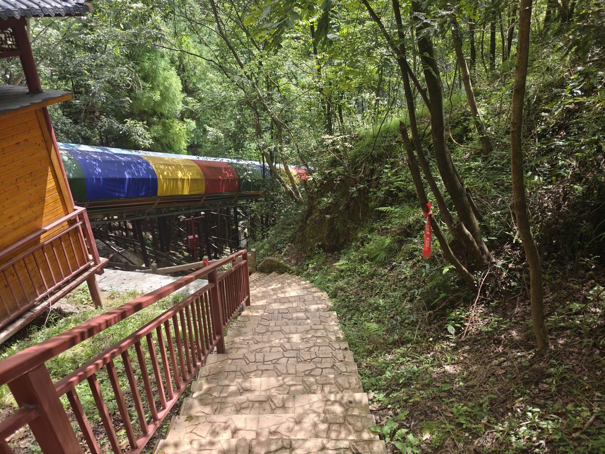 ▲即便是下完山,来到这样的阶梯路,我还是不好超过他们,且跟着吧~