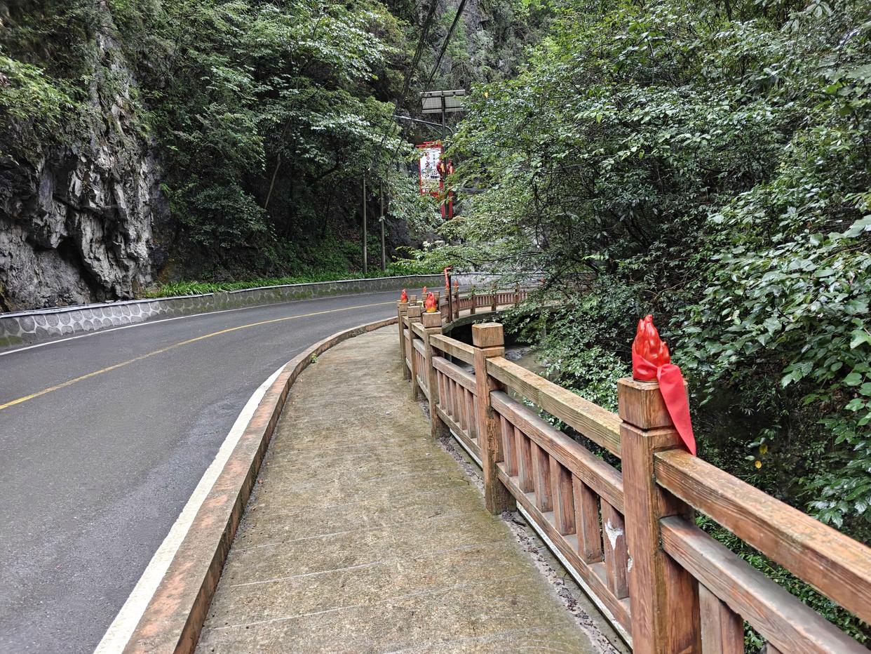 ▲继续出发,虽然已经是下午18时02分,不过天倒是还没黑。前面就是尧帝神峡了,不过赛事路线走的右边的游览道,而不是左侧的车道,好在问过工作人员,说是没有泥巴路了,心下稍安。