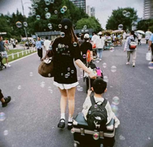 暮色漫上来时,风筝已经变成天边一个小小的蓝点。想想趴在她肩头打哈欠,手里还攥着半朵枯萎的二月兰。路过秋千架时,他忽然抬起沾满蛋糕渣的小脸:"妈妈明天还来吗?"风掀起她的围巾,掠过孩子柔软的发顶,远处的路灯次第亮起,像撒在夜幕里的碎星。