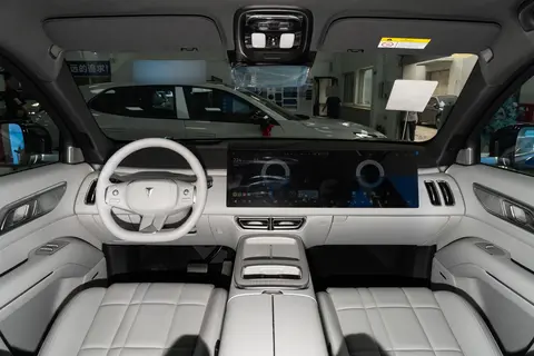 领克900则延续了新能源车简洁且现代设计风格,仪表台宽阔平整,营造出卓越驾驶视野。配备30英寸6K一体式天际屏和12.66英寸高清液晶仪表,视觉震撼。同时,车内应用256色RGB流水渐变式AI鎏光氛围灯,利用SmartRGB阵列加灯带组合支持AI场景联动匹配呼吸、心跳、音乐节奏等预设效果,营造氛围丰富多样。内饰材质上首次引入金属珠光面料,半透明配合真空电镀技术呈现3D景深视觉效果,辅以仿麂皮织物与仿麂皮PU面料,兼具天然手感、透气耐久特性。