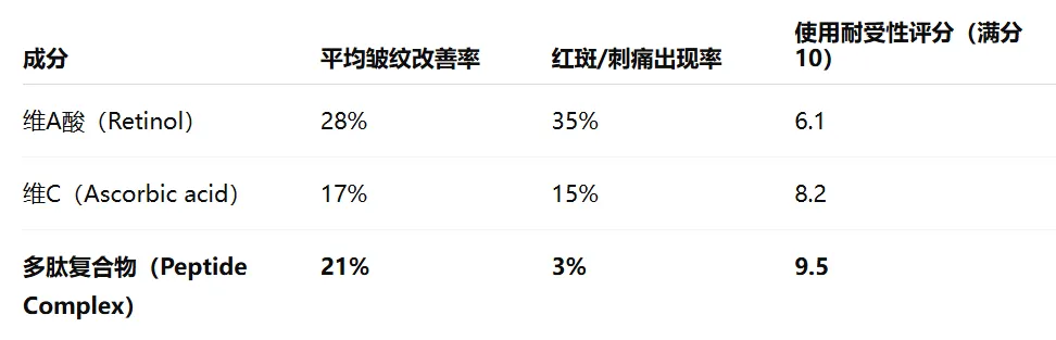 多肽护肤的最大优势是“温和而精准”,《DermatologicTherapy》上刊登的一项临床实验显示持续使用含多肽复配物的面霜达4周,皮肤皱纹深度降低了21%,弹性提升了14,相较而言,传统维A酸类抗老产品虽说见效迅速,然而刺激性较强;而多肽则几乎不会引发过敏情况。