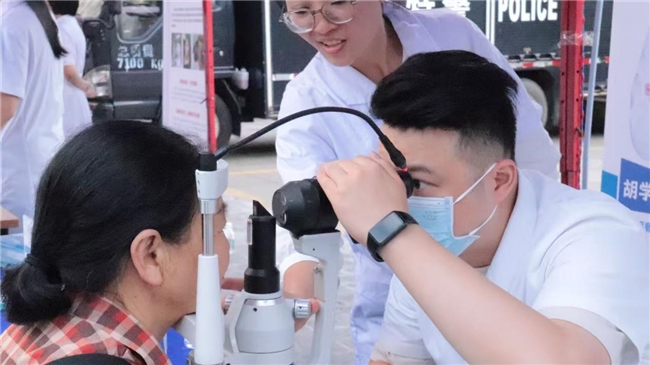 本次过的为辖区居民免费检查青光眼、白内障、视线模糊、眼睛干涩、迎风流眼泪等常见眼病。在检查的过程中,医生们发现不少老年人患有高血压和糖尿病,眼底有不同程度的病变。贵州普瑞眼科医院胡学伦医生表示:“对于这些患有眼底疾病的患者,须关注自身除眼病外的其他身体疾病,眼底疾病与全身性疾病有着非常密切的关系,眼底有全身唯一能用肉眼直接观察到动脉、静脉和神经(视神经)的部位。许多全身性疾病会影响到眼底的血管和神经,从而在眼底留下特征性的‘痕迹’”。