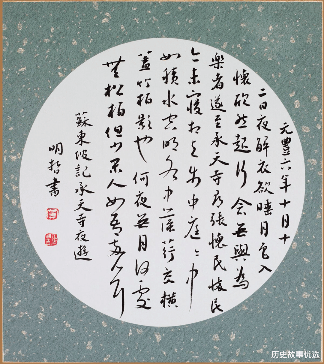 这个落魄中年小吏就是苏东坡,他词性大发写的小短文叫《记承天寺夜游》。