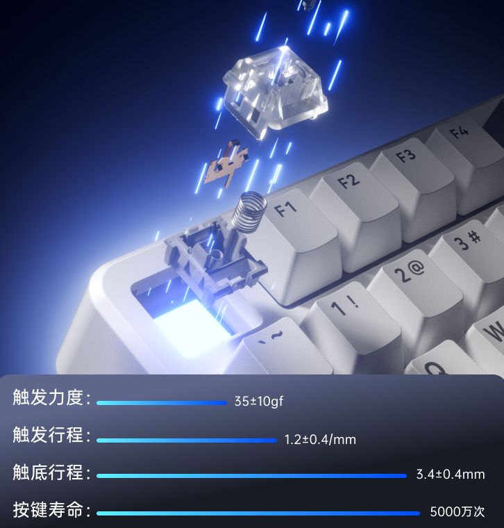 每一种轴体触发压力都不相同, 触发压力越轻,手感越顺滑,但可能增加误触的风险;触发压力越重,手感越有“力量感”,但可能加重手指负担。