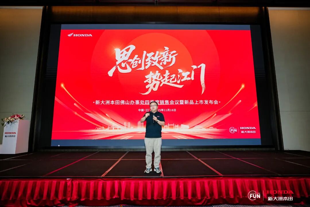 11月15-16日,新大洲本田佛山办事处以“思创致新,势起江门”为主题,从中国侨都江门出发,向广东全省(包括海南市场)经销商传递出“致新”的起跑讯号。