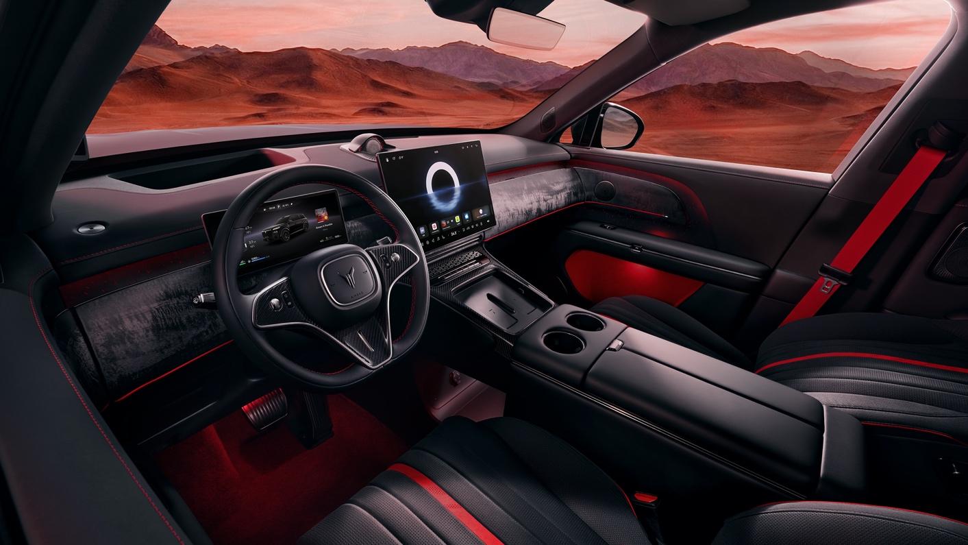 内饰上,以“丹墨”配色营造热血氛围,配合“流云墨韵”饰板与手工编织的598颗灯珠“星河天幕”星空顶,共同构建了一个既热血又沉静的移动空间。定制开发的甲胄绗缝座椅与顶级NVH静谧性,让“中式豪华”深入到感官享受与情感共鸣的每一个细节中。