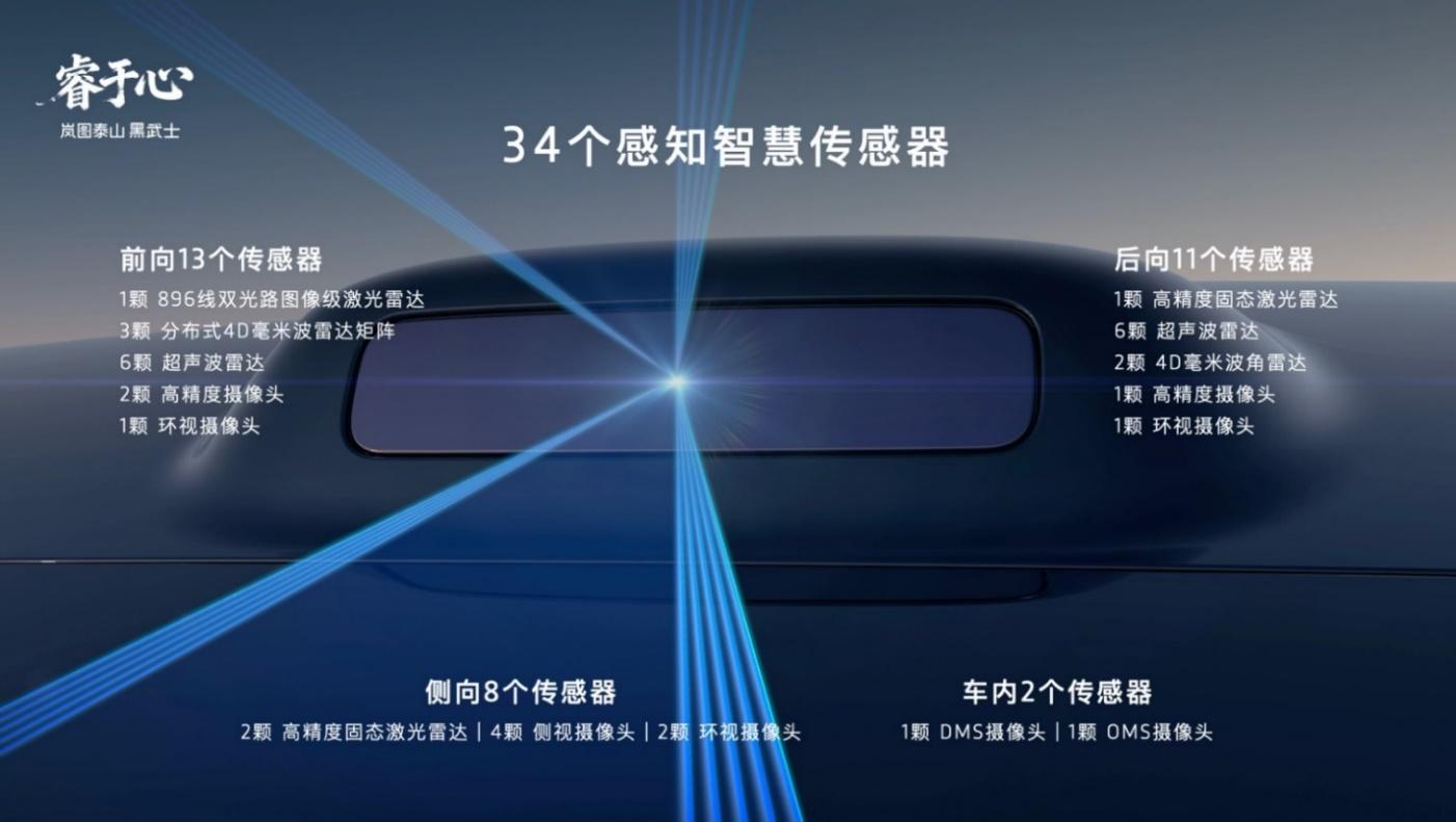 在与华为乾崑的深度优势互补下,岚图泰山Ultra及黑武士搭载了华为目前最新的乾崑ADS V4.1激光雷达方案,配备了包括激光雷达,高清摄像头、毫米波雷达、超声波雷达在内共计34颗高精度传感器,构建起全场景无死角的感知网络,为高阶智能辅助驾驶决策提供可靠依据。尤其核心的全球量产最高规格896线双光路图像级激光雷达,相比传统192线激光雷达,896线激光雷达实现了断层领先,针对30cm高度障碍物最远识别距离高达162米,针对14cm小目标也能实现120米远距识别,真正实现了从“点云级”到“图像级”的跨越,是目前行业感知硬件的“天花板”。