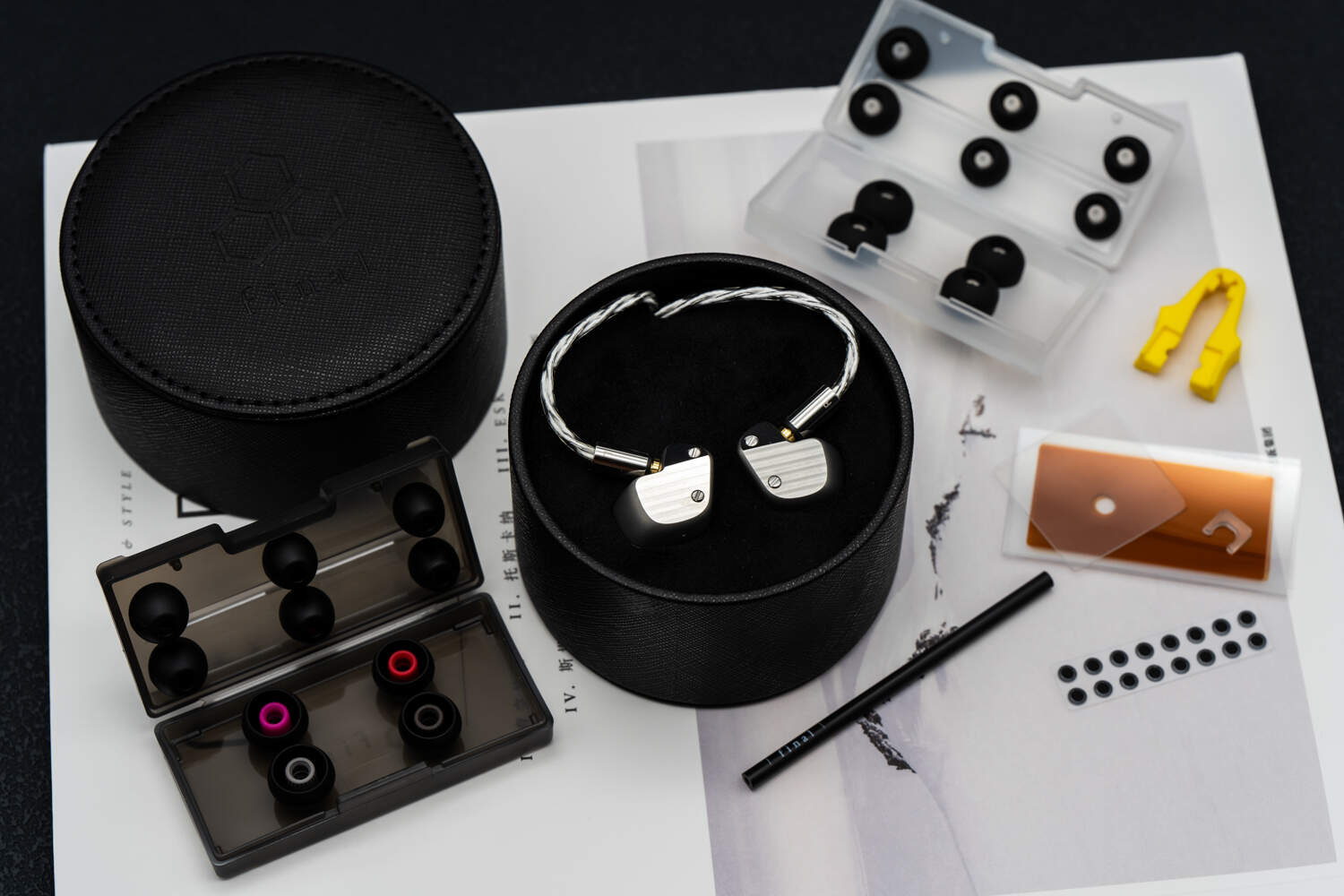 A10000有两个版本,分别是金色的限量版和银色的标准版。本文展示的是银色标准版的外观和配件;金色限量版在造型与声音表现上和标准版一致,但增加了实木包装盒、限定金属收纳盘等专属元素,全球限量300条,具有一定的收藏价值。配件方便,标准版包含黑色的圆形收纳盒以及耳套等常规配件;有意思的是final给A10000的线材拆装和导管滤网替换设计了阵容强大的专用工具,并且在说明书中对操作方法有着详细说明,很是人性化。A10000这次的MMCX接头虽然依旧可以转动,但结合得非常之紧,以至于徒手根本拔不下来,必须借助官方工具才能拆卸,可见final虽然坚守MMCX,但在可靠性方面是在不断提升的。而这条线材是采用ePTFE泡棉结构包覆的、final与日本润工社合作的高纯度镀银线材,你也可以叫它“超级京线”,线材自身素质出色。