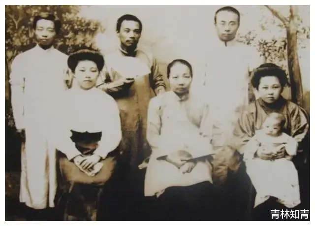 1912年周家合影,后排左为周建人、右为周作人,前排左起:羽太芳子(周建人妻子)、周母鲁瑞、羽太信子