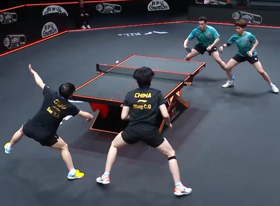 黄镇廷/杜凯琹打疯了。第四局直接轰出11-1的夸张比分,把世界第一组合打到怀疑人生。要知道这对香港组合此前对"莎头"五连败,这次却像打了鸡血。杜凯琹的反手快撕直接撕破国乒防线,黄镇廷的台内挑打让王楚钦频频失误。
