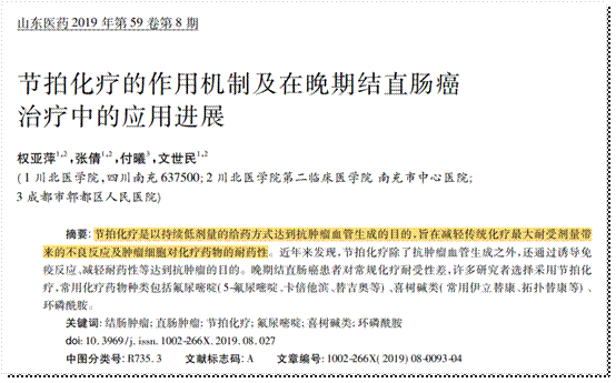 [3]权亚萍,张倩,付曦,等。节拍化疗的作用机制及在晚期结直肠癌治疗中的应用进展[J].山东医药,2019,59(8):93-96.