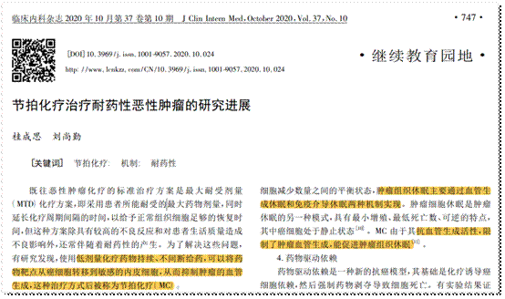 [4]李明辉,等。卡培他滨节拍化疗的分子机制研究[J].中国肿瘤临床,2023,50(8):401-406.