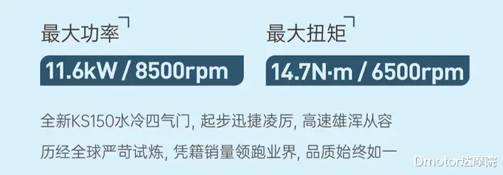 2026款TX150搭载隆鑫KS150水冷发动机,在8500转输出最大功率11.6kW(约15.77匹),在6500转时攀升至最大扭矩14.7Nm!