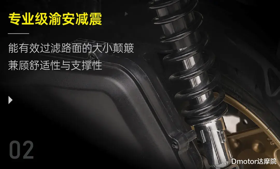 减震方面,后减震采用渝安减震,调校取向还是偏舒适,主要针对城市路况,对细碎震动的过滤更友好。