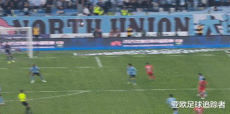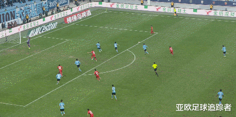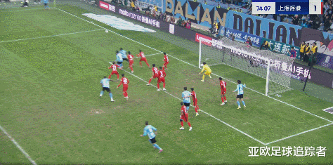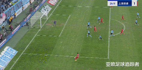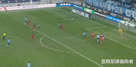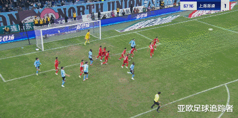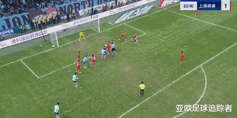 比赛第75分钟,英博的角球造成了海港禁区内的混乱,马马杜乱中起脚将球稍稍打高。