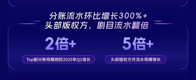 快手相关人士介绍,过去一年,快手分账短剧数量环比增加150%。在供给和流量的驱动下,分账短剧整体流水规模环比2025年Q1增长300%。其中Top分账短剧,流水规模也环比翻了两倍,版权方收入增长5倍,头部剧集月流水达数十万级。且分账规模还将持续增长,预计未来一年将突破4亿。
